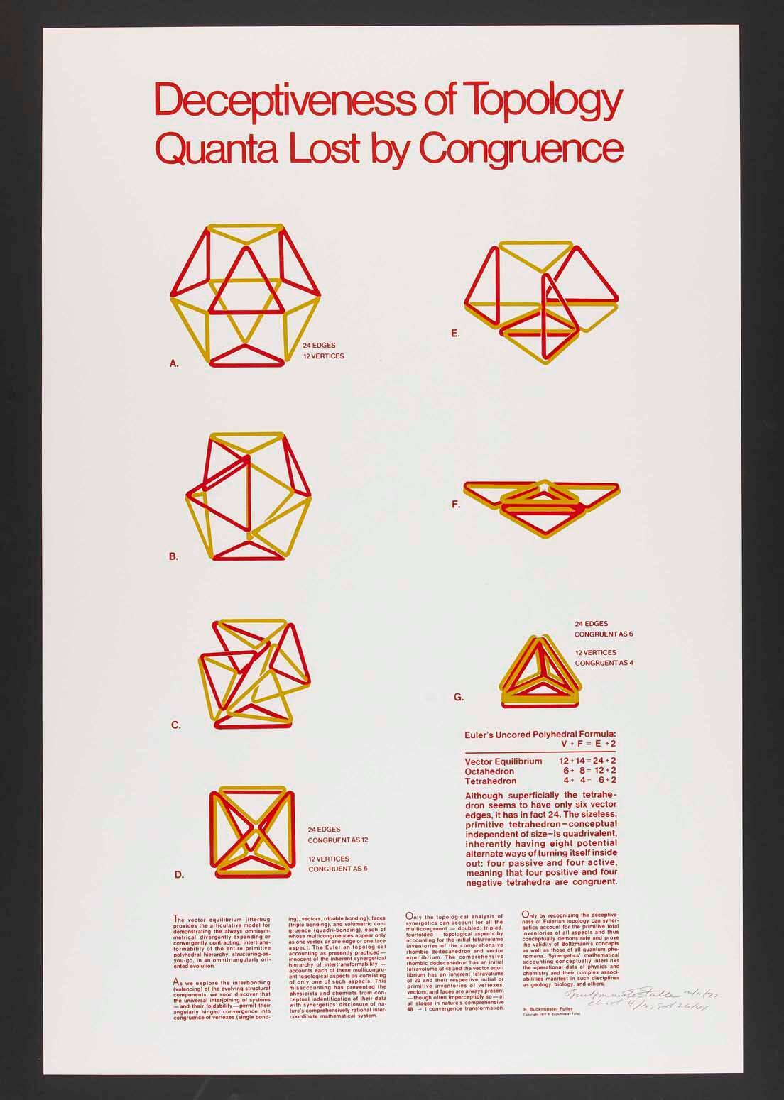 DescriptionThis folio consists of ten posters. Each poster has its specific title and each consists of either geometric diagrams with descriptive text or text which outlines Buckminister Fuller's theory of Synergetics.Copyright© Estate of R. Buckminster Fuller