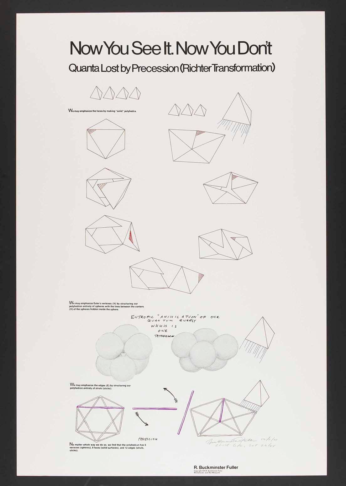 DescriptionThis folio consists of ten posters. Each poster has its specific title and each consists of either geometric diagrams with descriptive text or text which outlines Buckminister Fuller's theory of Synergetics.Copyright© Estate of R. Buckminster Fuller