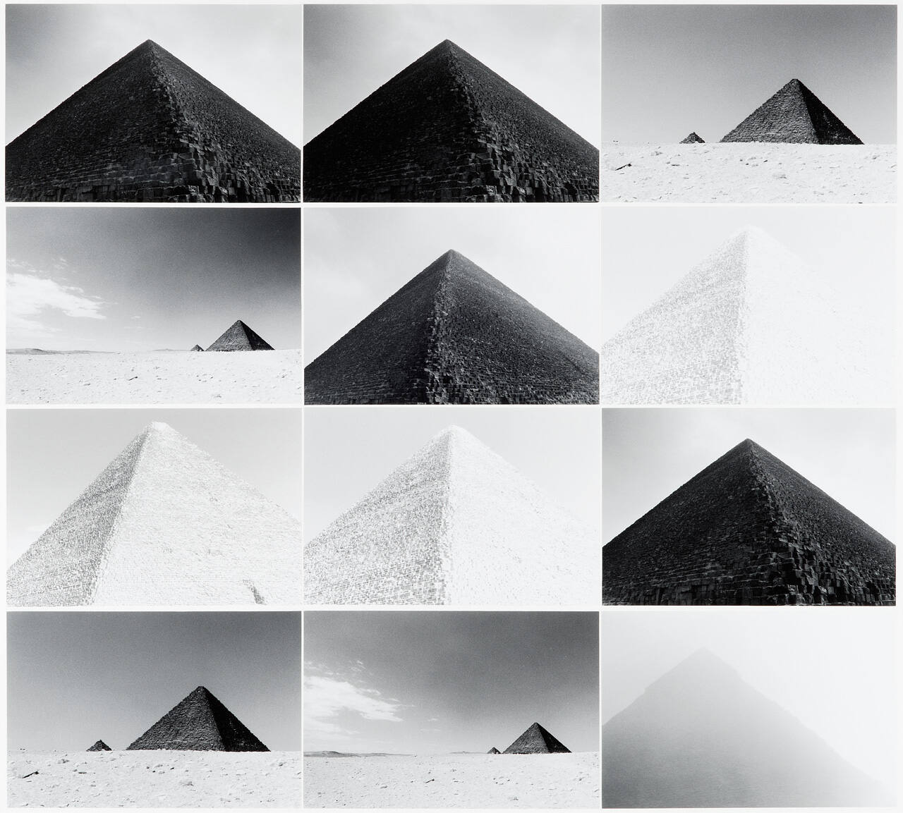 In this grid of images depicting the ancient pyramids of Egypt, DoDo Jin Ming explores both the technical nature and subjectivity of the photographic language, using the conceptual strategy of a typology. By shifting the vantage point, scale and tonal rendition in each of her photographs, Ming essentially abstracts her subject, suggesting that there is no one correct or official view, but rather collective (and subjective) variations of a type that inform the viewer's perceptions of these historic monuments.