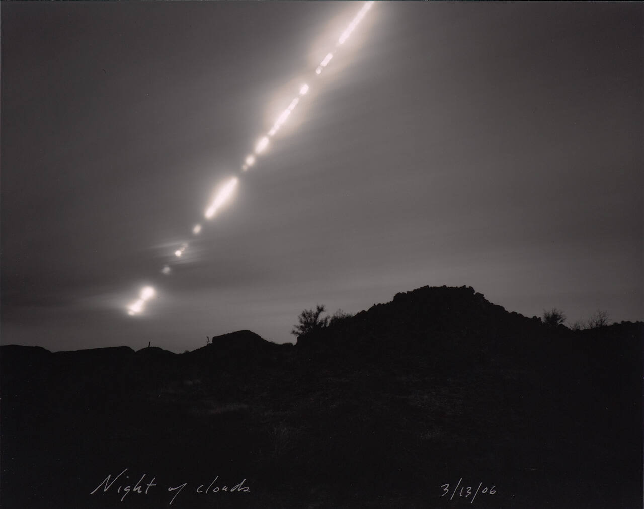 InscribedOn front, in silver ink along lower edge: "Night of clouds"' on back in pencil in lower area of print: "[copyright] 2006 mark Klerr [sig] 4/20"
