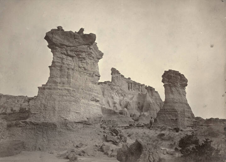 InscribedOn mount with lithographed text: on left side below print: "Wyoming Territory", on right side below print: "Mauvaises terres, Washakie Basin, No.-"; general survey credit in lower center of mount: U.S./Engineering Department/ Geological Exploration,/ Fortieth Parallel./T.H. O'Sullivan, Photographer." On back of mount, lower center in pencil: "THO/1332".