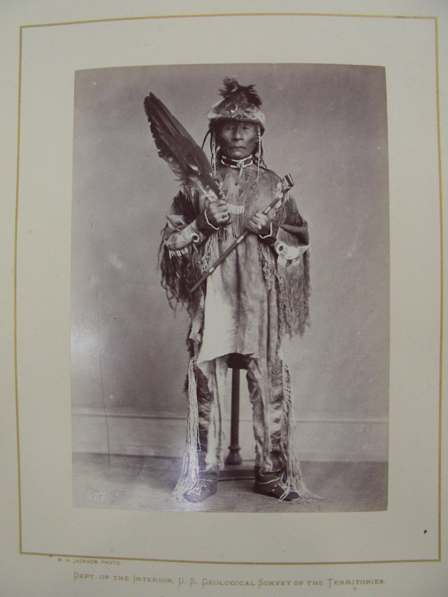 InscribedLithographed mount, with printed information below image; "W.H. Jackson Photo" and 'Department of Interior, U.S. Geological Survey of the Territories, Prof. F.V. Hayden in Charge".; In pencil on back "427. Jason (Nez Perce)"
