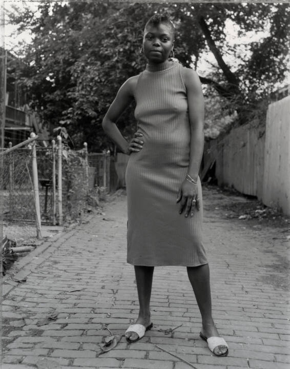DescriptionFull-length portrait of young African-American woman, hand on hip,Copyright© Dawoud Bey