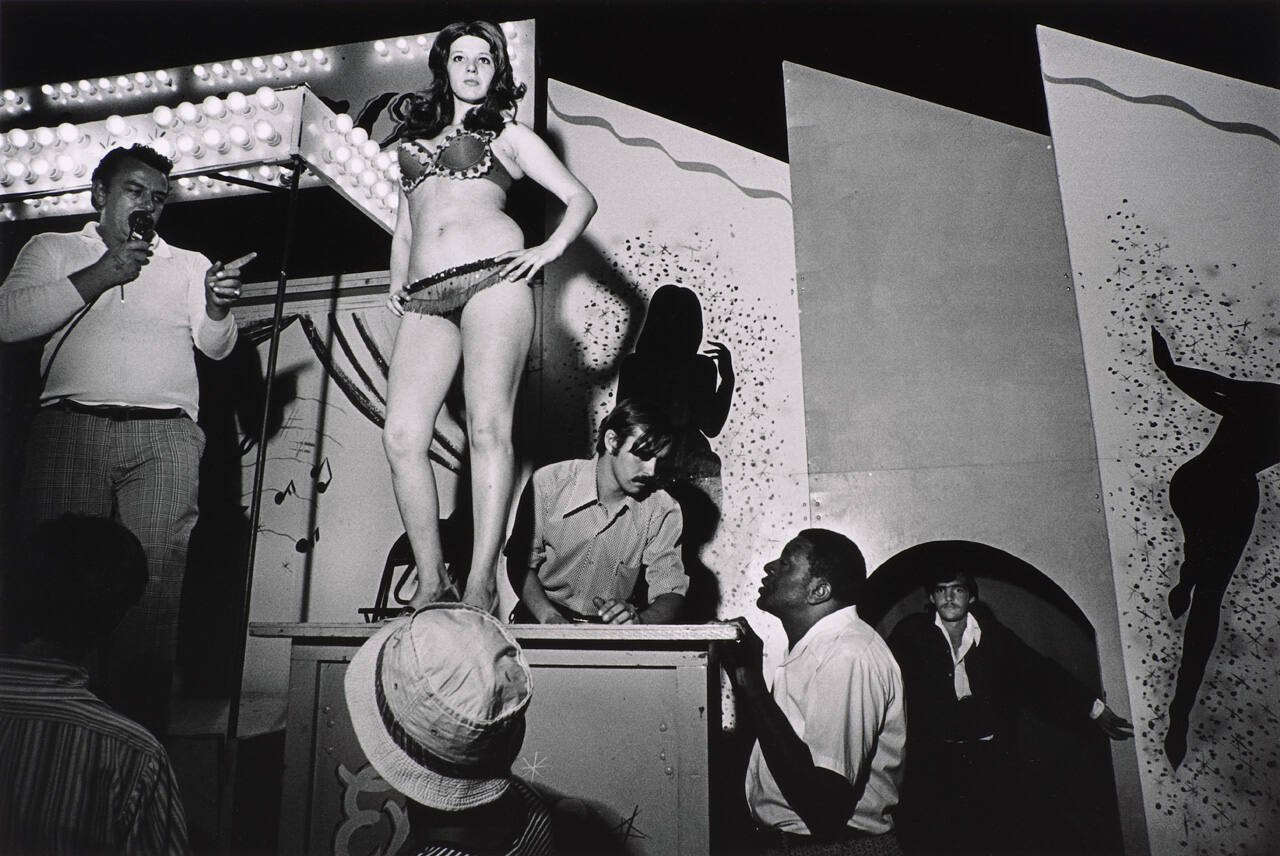 SignedOn back in pencil: "Lena on The Bally Box / Essex Junction, Vermont, 1973 / from 'Carnival Strippers'." Signed in pencil by artist