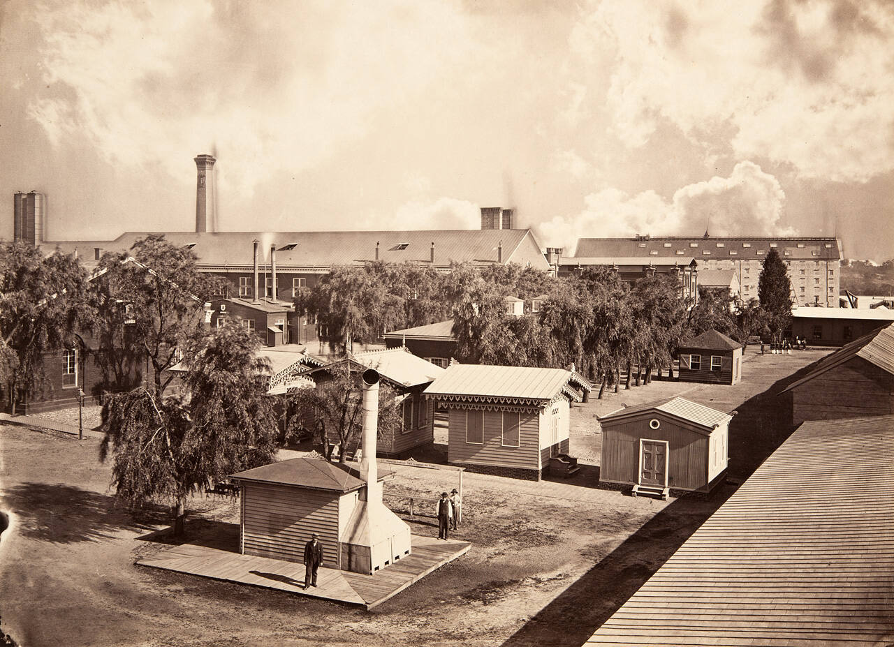 DescriptionView of Navy Ordnance yard in Washington DC. Three standing figures are visible in foreground.Exhibition HistoryRotation 19. The Nelson-Atkins Museum of Art, Kansas City, MO, May 9 – September 27, 2015, no cat.