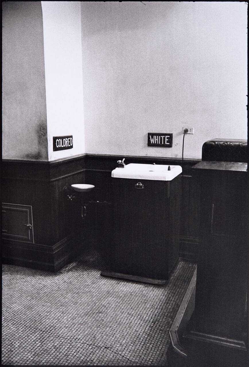 DescriptionInterior view of drinking fountain with signs "Colored" and "White" hanging on the wall above.Gallery LabelIn the early 1960s, Danny Lyon travelled with members of the Student Nonviolent Coordinating Committee (SNCC). He later became the group’s official photographer, photographing their sit-ins, speeches, and other demonstrations. Lyon also photographed the physical evidence of racism as it shaped civic and public spaces during the era of Jim Crow and the struggle for Civil Rights. Here, signs designate segregated water fountains. The one for “whites” is clearly larger and more convenient.