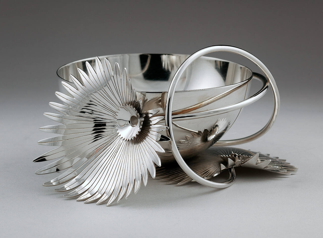 DescriptionMade of sterling silver, the Thatch Palm Bowl is composed of a bowl supported by two palm leaves linked by intertwined stems.Copyright© Robyn Nichols