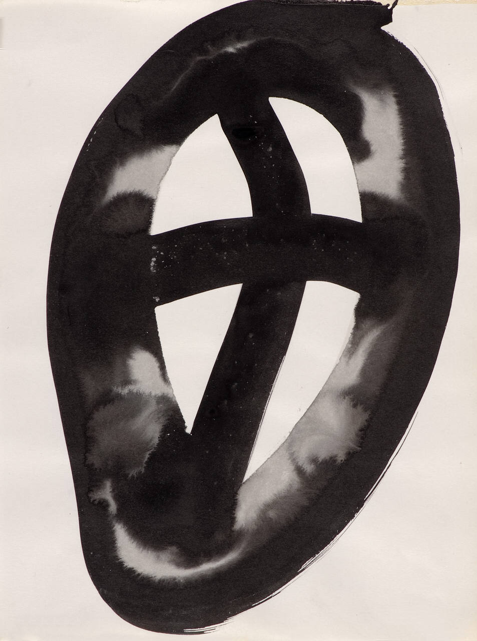DescriptionThis composition consists of a black ovoid form with two intersecting black lines that forms a cross-like configuration at its center. It is rendered loosely and in a gestural manner.Copyright© Sam Francis Foundation, California / Artists Rights Society (ARS), New York