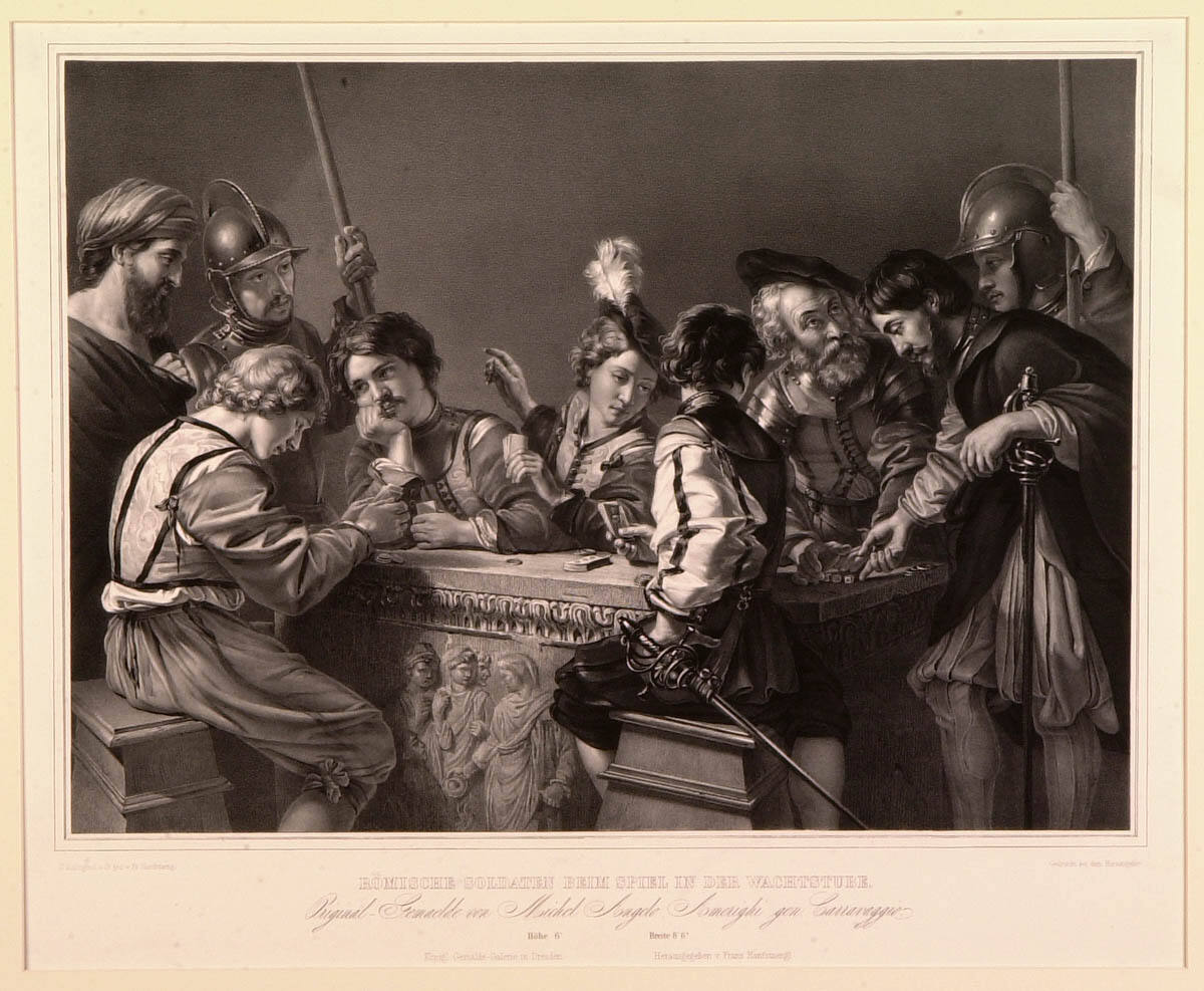 George L. McKenna, Prints, 1460–1995 (Kansas City, MO: Nelson-Atkins Museum of Art, 1996), 302, erroneously as after M. Caravaggio, Roman Soldiers Playing at Cards.