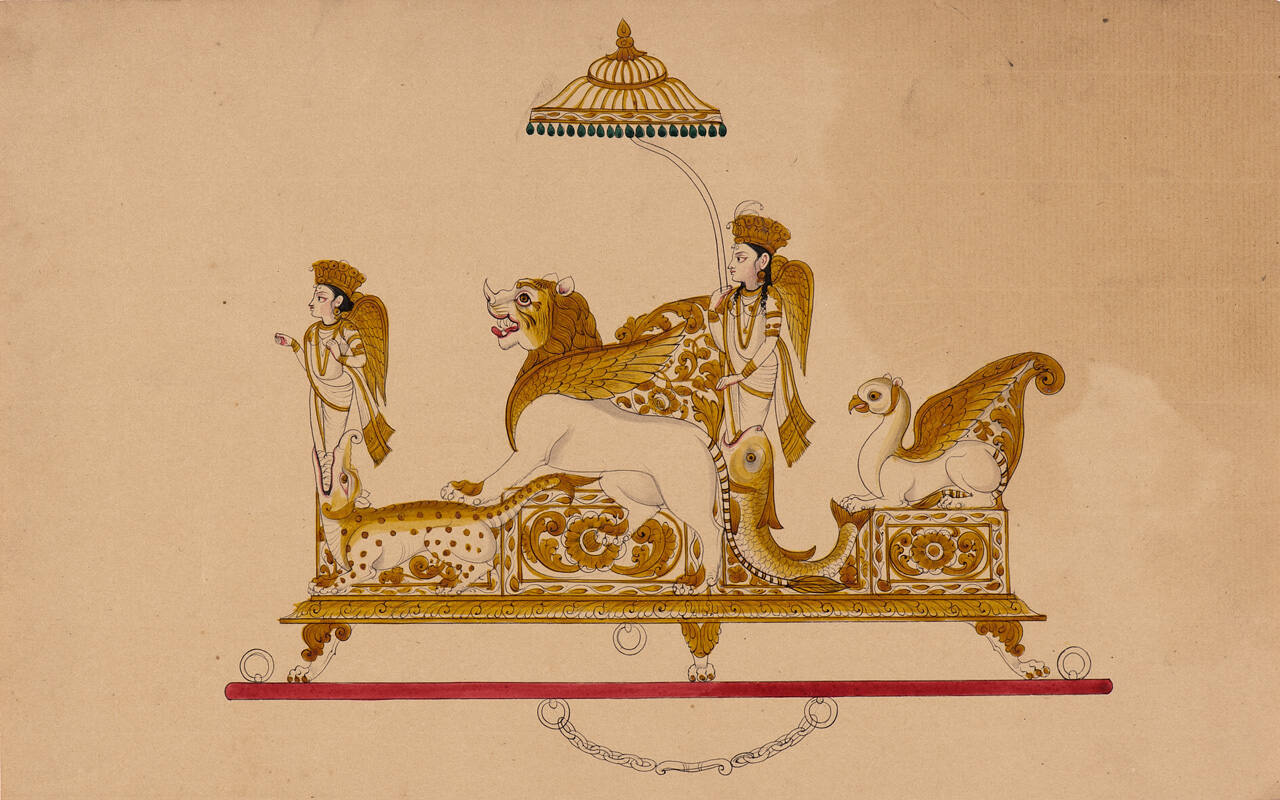 Design for a Howdah with Umbrella, Winged Figures and Animals from an Indian Workshop