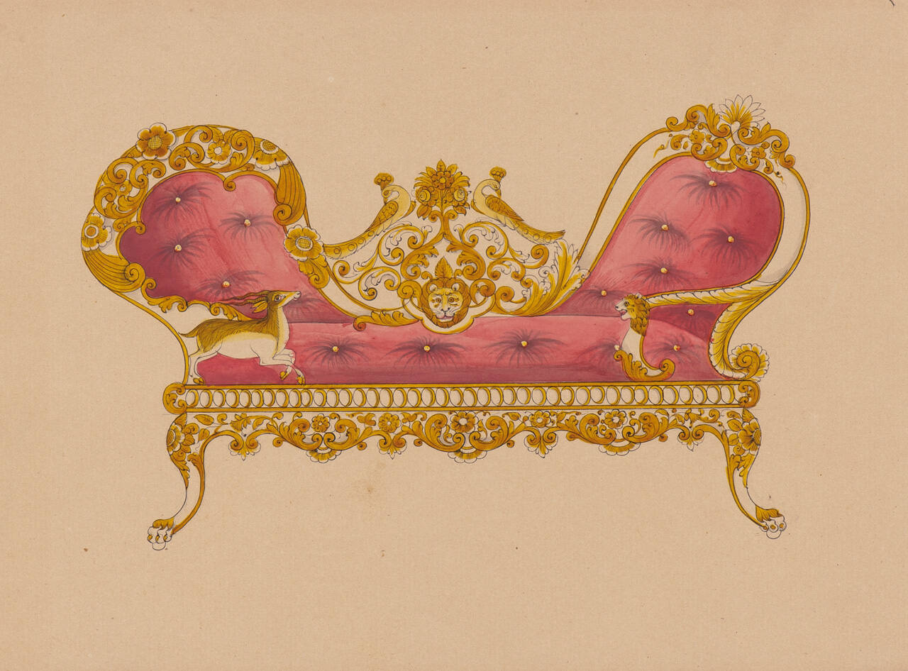 Purchased at Welch’s sale, The Stuart Cary Welch Collection, Part Two, Arts of India, May 31, 2011, as Twenty-two Designs for Furniture, Benares, Circa 1880, by The Nelson-Atkins Museum of Art, Kansas City, MO, 2011The Stuart Cary Welch Collection, Part Two, Arts of India (London: Sotheby’s, 2011), 186-87, (repro.).