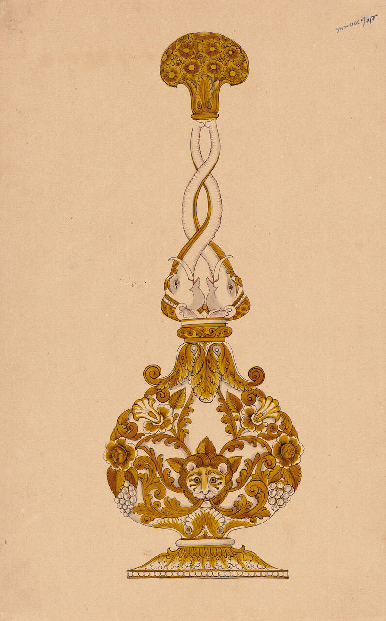 Design for a Rose-water Sprinkler with Animal and Foliate Decoration from an Indian Workshop