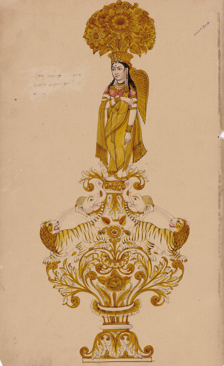 Design for a Rose-water Sprinkler with a Large Winged Figure and Animal Decoration from an Indian Workshop