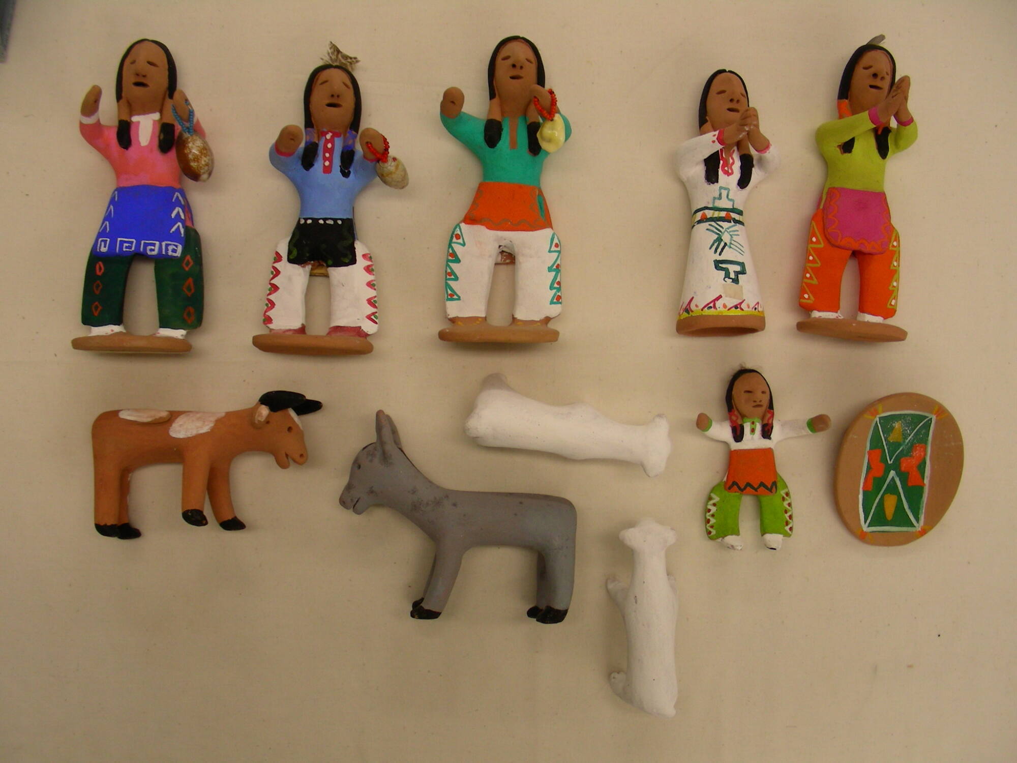DescriptionNativity set consisting of eleven pieces, all of low-fired clay and painted with commercial pigments.A. Joseph - 7 x 2 1/2 x 3 in.