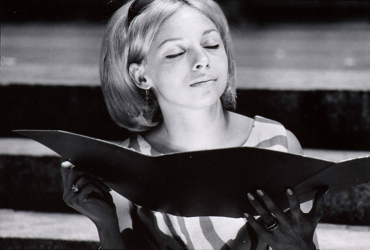 DescriptionWoman with eyes closed sitting on stairs holding sun reflector in front of her face.ProvenanceHall Family Foundation, Kansas City, MO, 2011;