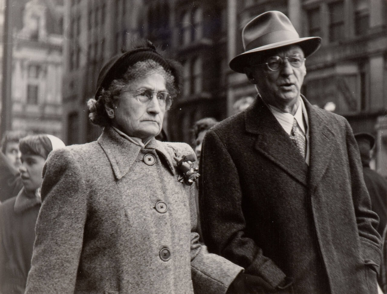 DescriptionCouple on city street, both wearing hats and overcoats.ProvenanceHall Family Foundation, Kansas City, MO, 2011;
