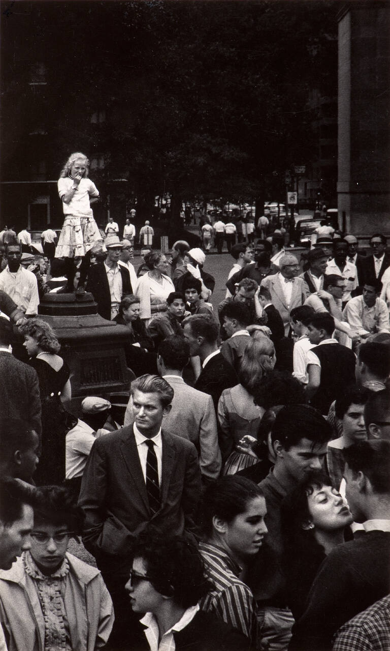 DescriptionLarge crowd on street; young girl standing on top of structure at top of frame.Exhibition HistoryMultitude, Solitude: The Photographs of Dave Heath. Philadelphia Museum of Art, Philadelphia, PA, September 19, 2015 – February 21, 2016, The Nelson-Atkins Museum of Art, Kansas City, MO, November 19, 2016 – March 19, 2017, 2.