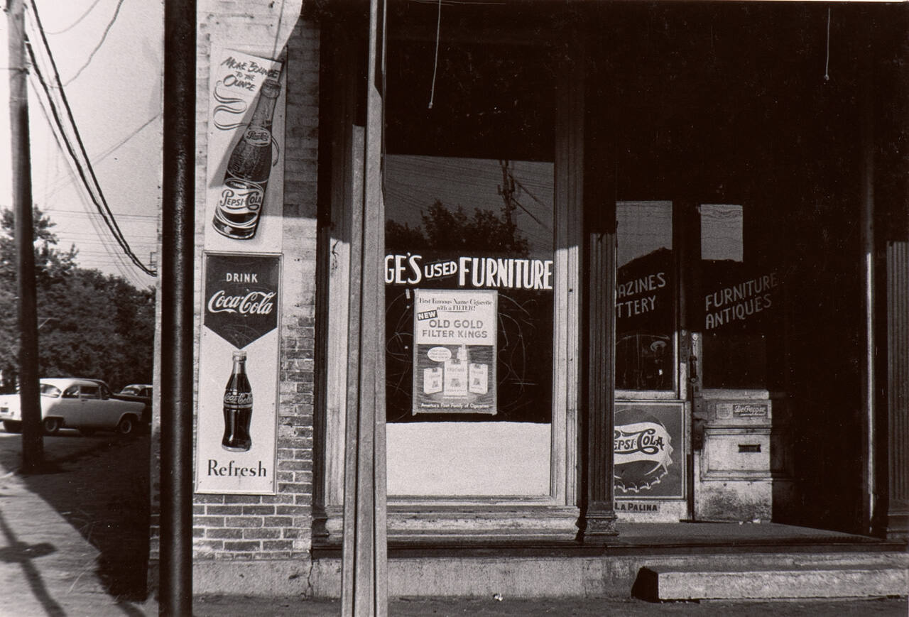DescriptionImage of a corner storefront with a Coke advertisement on the brick wall.One of fourteen photographs included in an album made by the artist.