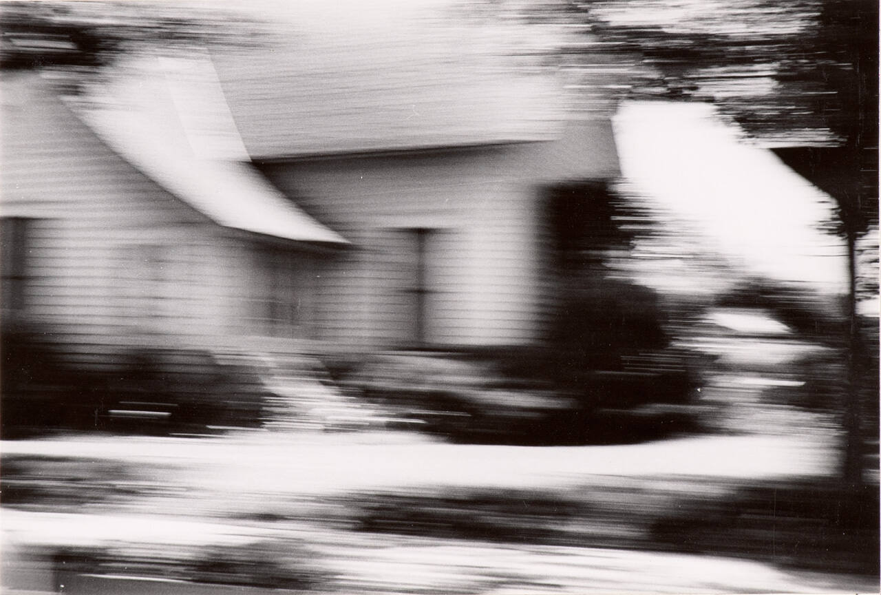 DescriptionImage of blurry house. One of fourteen photographs included in an album made by the artist.Copyright© Charles Swedlund