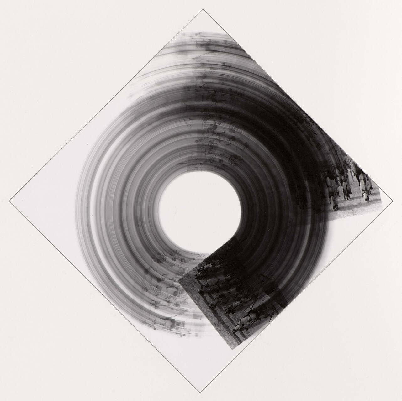 DescriptionBlurred image resulting in concentric circles; figures dressed in Native American attire barely visible.Copyright© Estate of John Wood / Carol Wood