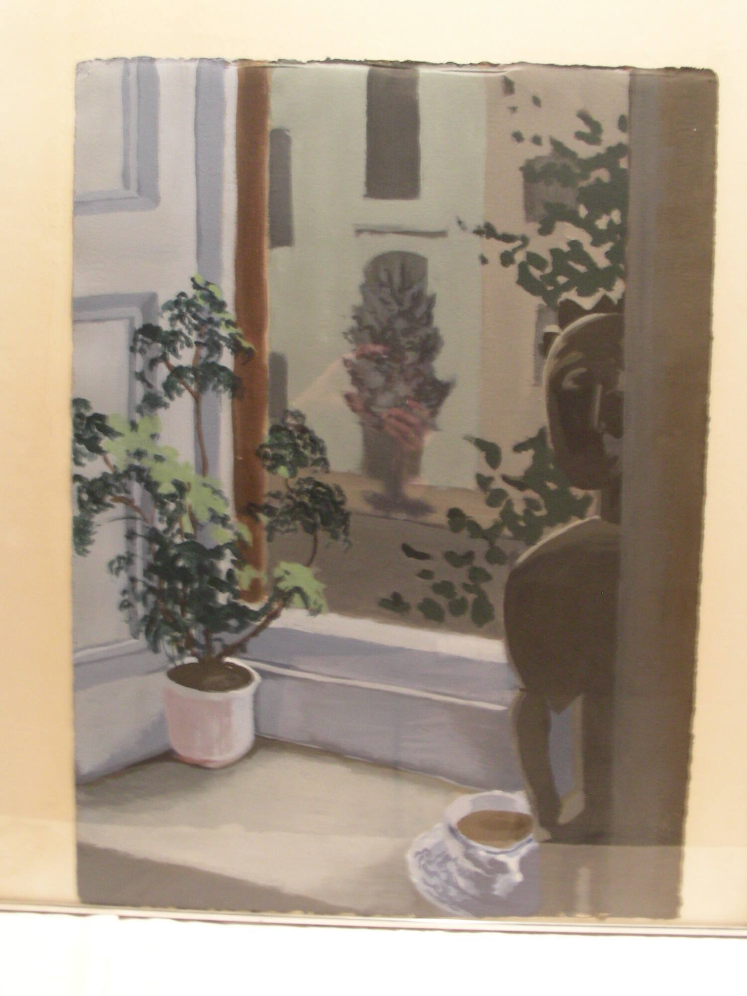 DescriptionThis painting depicts an African sculpture (right) and green houseplant (left) on a window sill. The remainder of the painting shows a view through the window to the outdoors.Copyright© Estate of Darragh Park, William C. Halter, Jr. (attorney and co-executor) and James M. Park (co-executor)