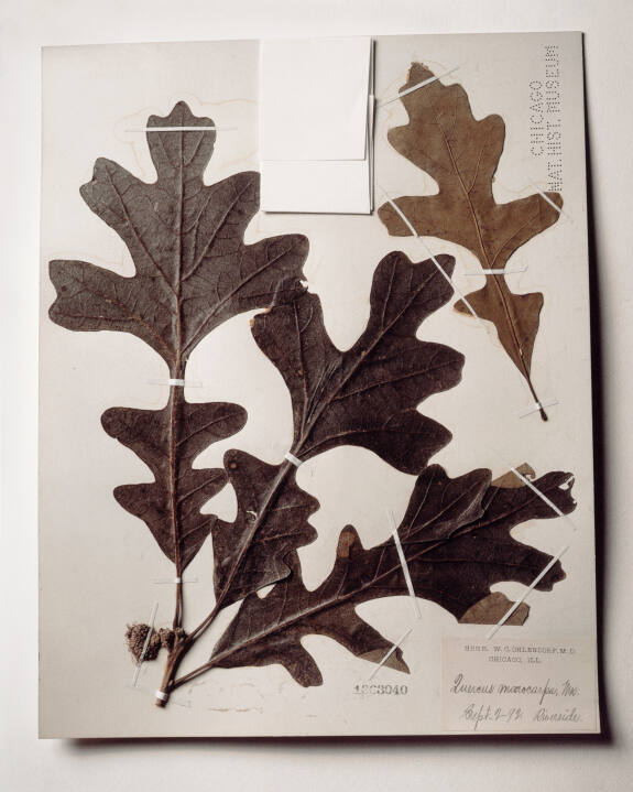 Inscribedon front of print, below image on left, in pencil, "Field Museum, oak leaves, 1892"