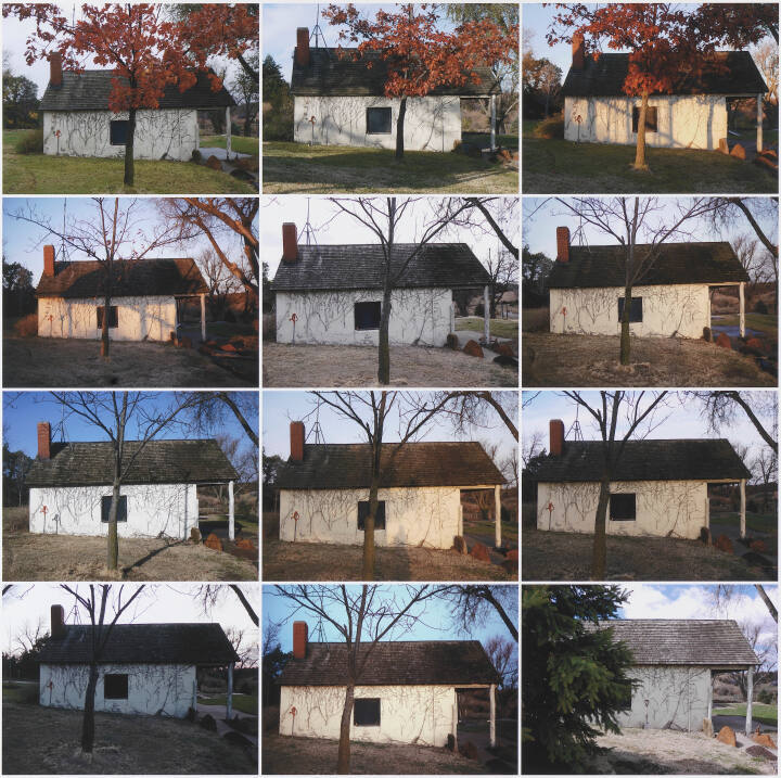 DescriptionFour rows of three images each; all images of small building with a tree in front, taken over different seasons.Copyright© Terry Evans