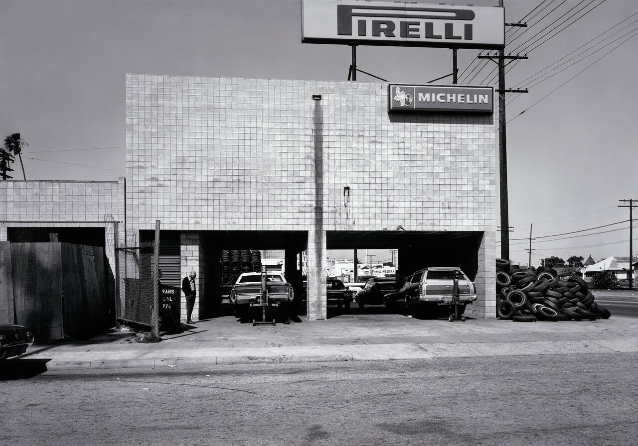 DescriptionImage of two cars on jack stands in a carport with a Michelin sign above and a large pile of tires on right.Copyright© Anthony Hernandez