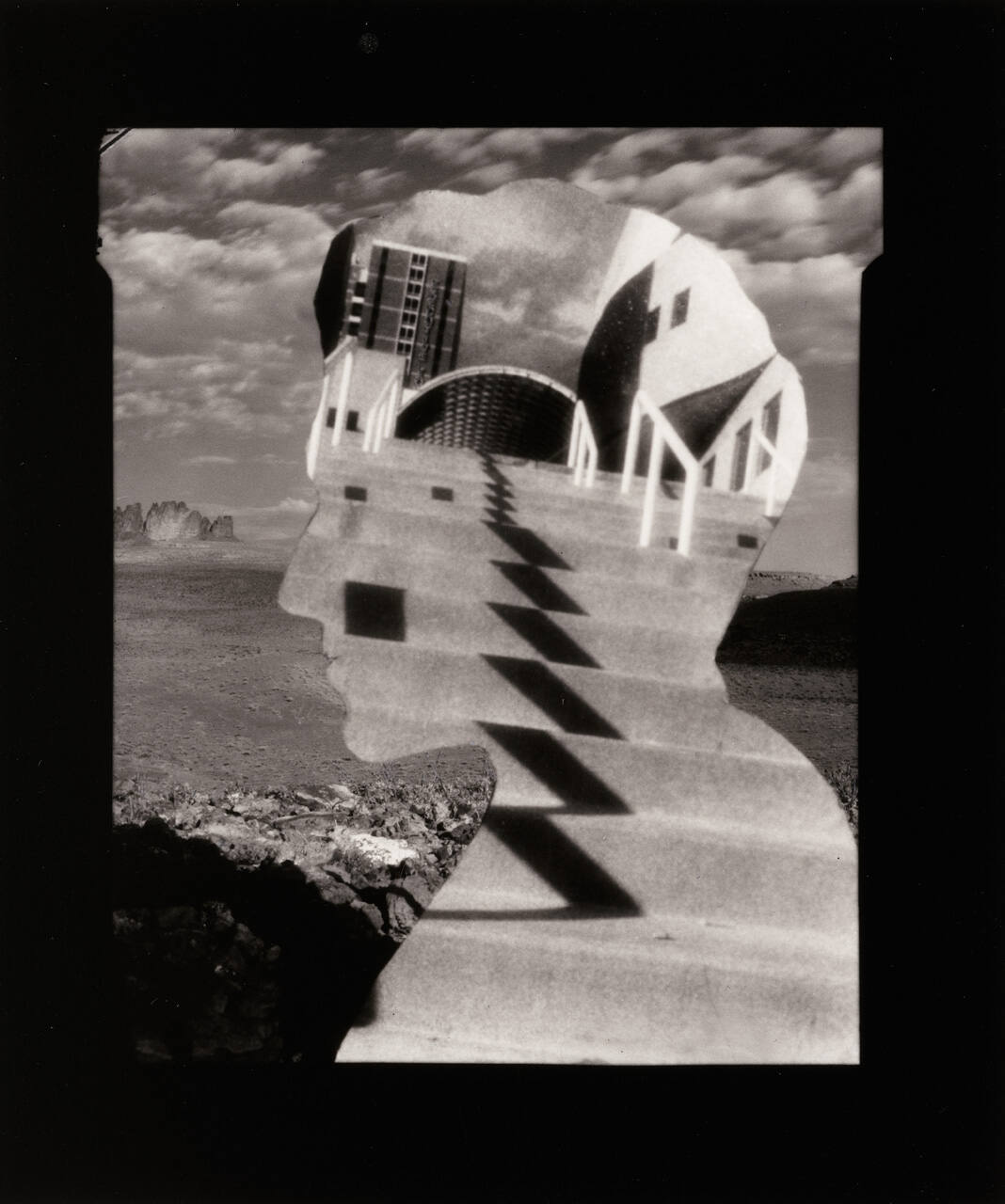 DescriptionProfile of male head with stairs superimposed on top; clouds and rocks in background.Copyright© Ruth Thorne-Thomsen