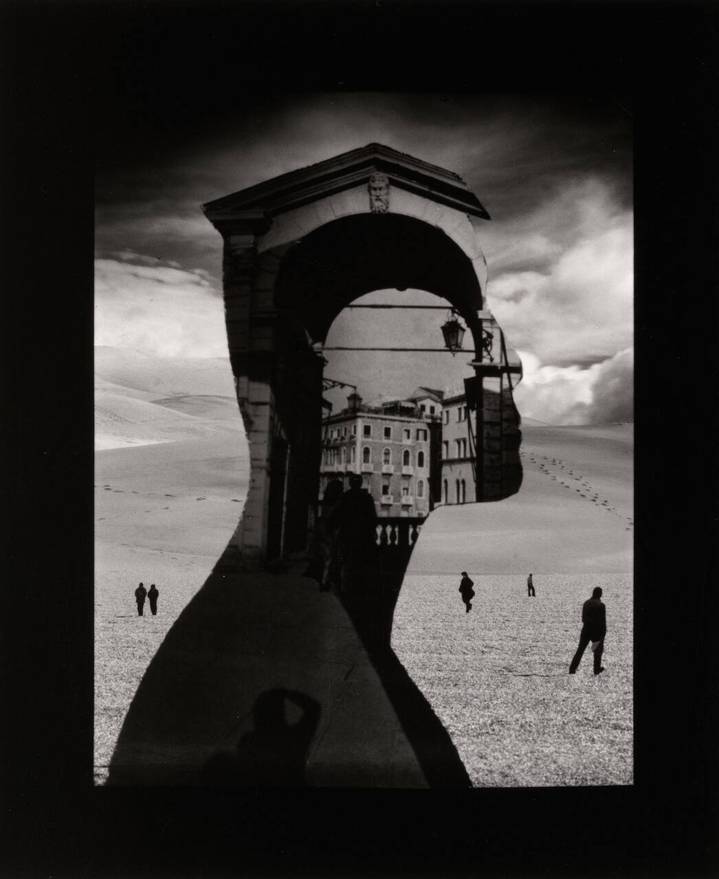 on front of mat, lower left in pencil "HOMO SUM, "VIEWS FROM THE SHORELINE" 1986"; on front of mak, lower right in pencil "17/25"; on back of mat, upper left corner, white label with black type Ruth Thoren-Thomsen [bold]/ Homo Sum, Views from the shoreline, 1986/ 8 1/2 x 7" gelatin silver print, #17/25"