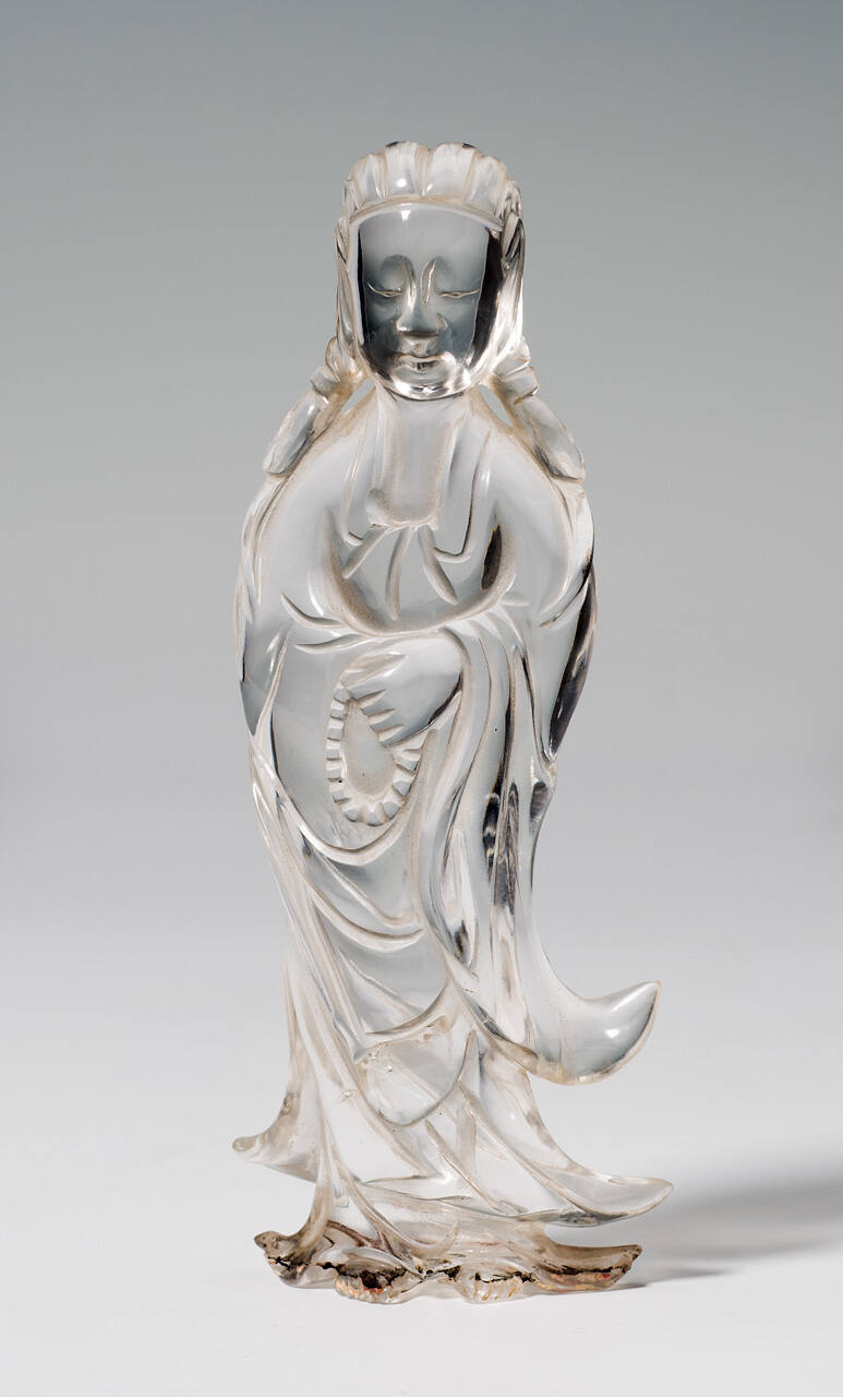 DescriptionStanding figure in long robes holding rosary in left hand.