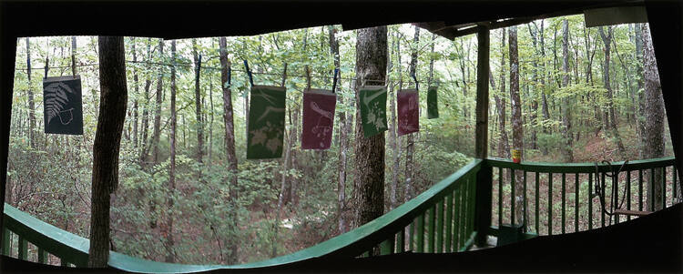 InscribedInscribed on front of sheet, lower left, in black pen “Darryl Curran’s work – Studio in a Sea of Leaves”
