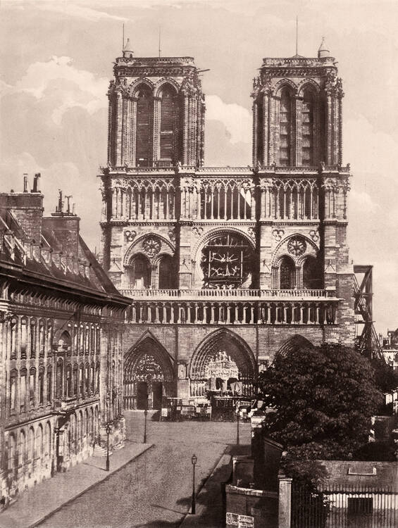InscribedOn mount recto, bottom center, typed in black “Photog Bisson F. / Heliographie suracier par Mme A.Riffaut A Riffaut sculp / Paris, chez RAPILLY Quai Malaquais. 5. / NOTRE-DAME / Imp Delamain et Saraxin r. Gitle Coeur 8 Paris”