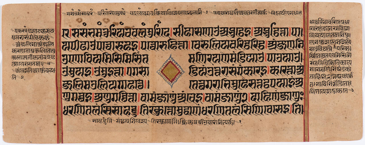Jain Manuscript of the Kalpasutra and Kalakacavyakatha: recto; text, verso; Shaka (Indra) Worshipping the Embryo