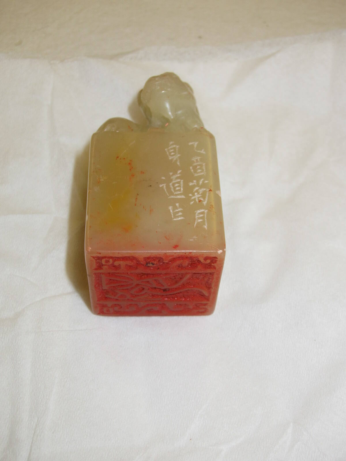DescriptionCarved marble with lion on top.