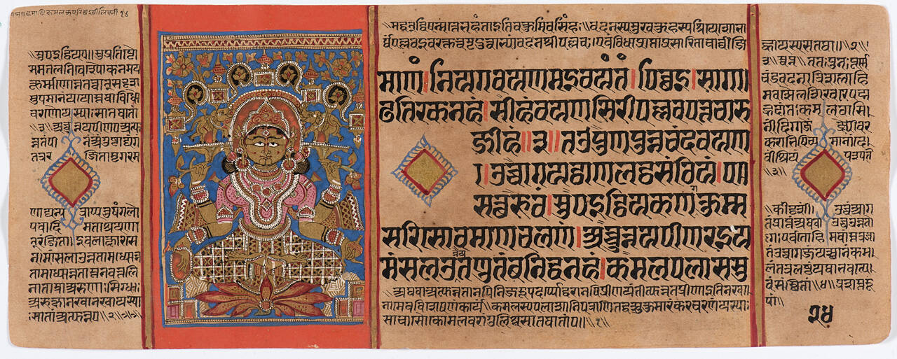 Jain Manuscript of the Kalpasutra and Kalakacavyakatha: recto; text, verso; painting of the Goddess Shri, the Fourth Dream