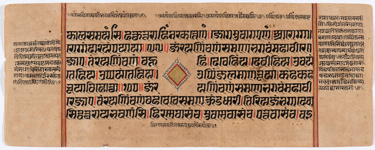 Jain Manuscript of the Kalpasutra and Kalakacavyakatha: recto; text, verso; painting of the Birth of Mahavira with Trishala