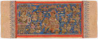 Jain Manuscript of the Kalpasutra and Kalakacavyakatha: recto; Nemi rides on an Elephant towards his Bride, Rajamati, verso; text