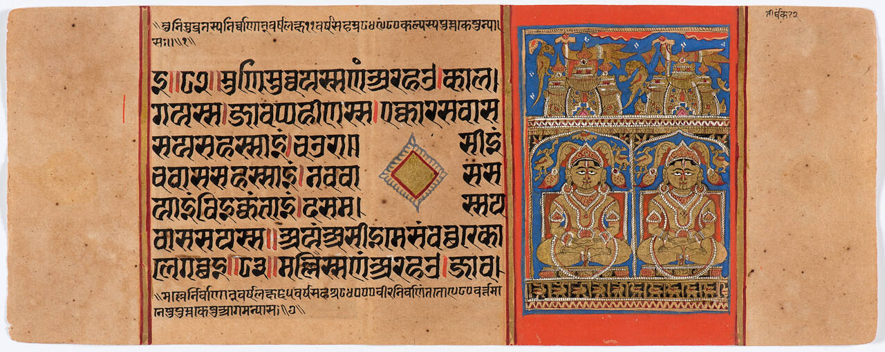 Jain Manuscript of the Kalpasutra and Kalakacavyakatha: recto; painting of Two Jinas, Malli and Ara, verso; painting of Two Jinas, Kunthu and Shanti
