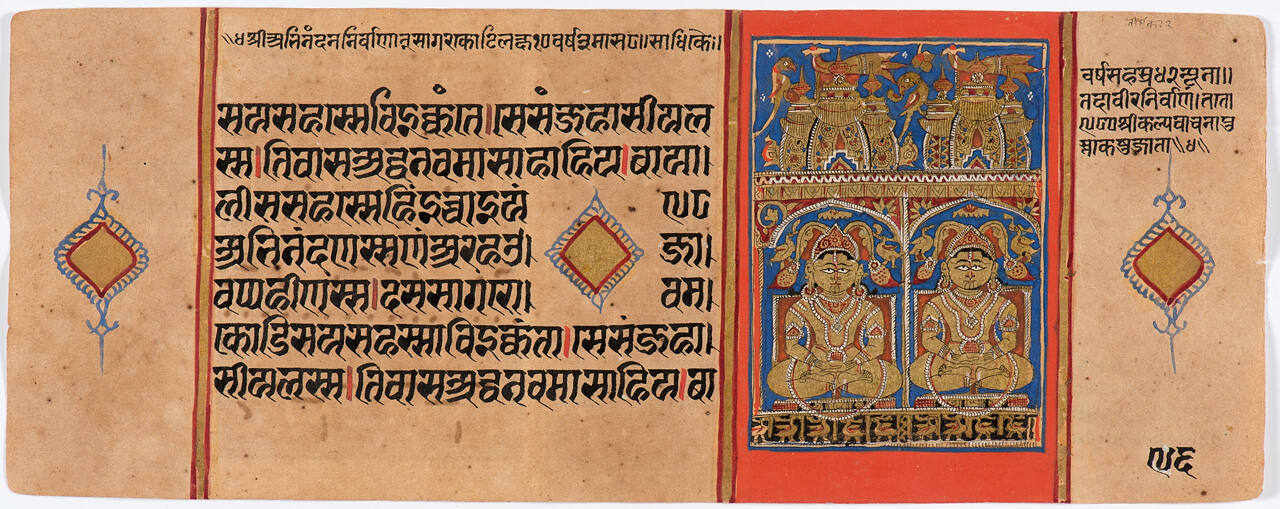 Jain Manuscript of the Kalpasutra and Kalakacavyakatha: recto; painting of Two Jinas, Pushpadanta and Candraprabha, verso; painting of Two Jinas, Supashva and Padmaprabha