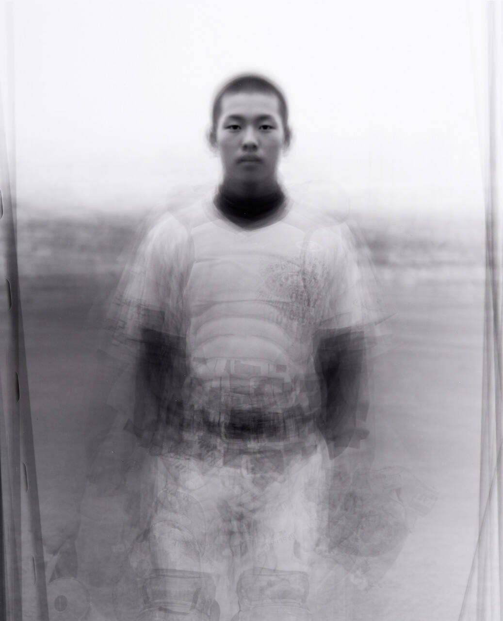 DescriptionMultiple images used to create one slightly blurry portrait of a male baseball player wearing uniform.Copyright© Ken Kitano