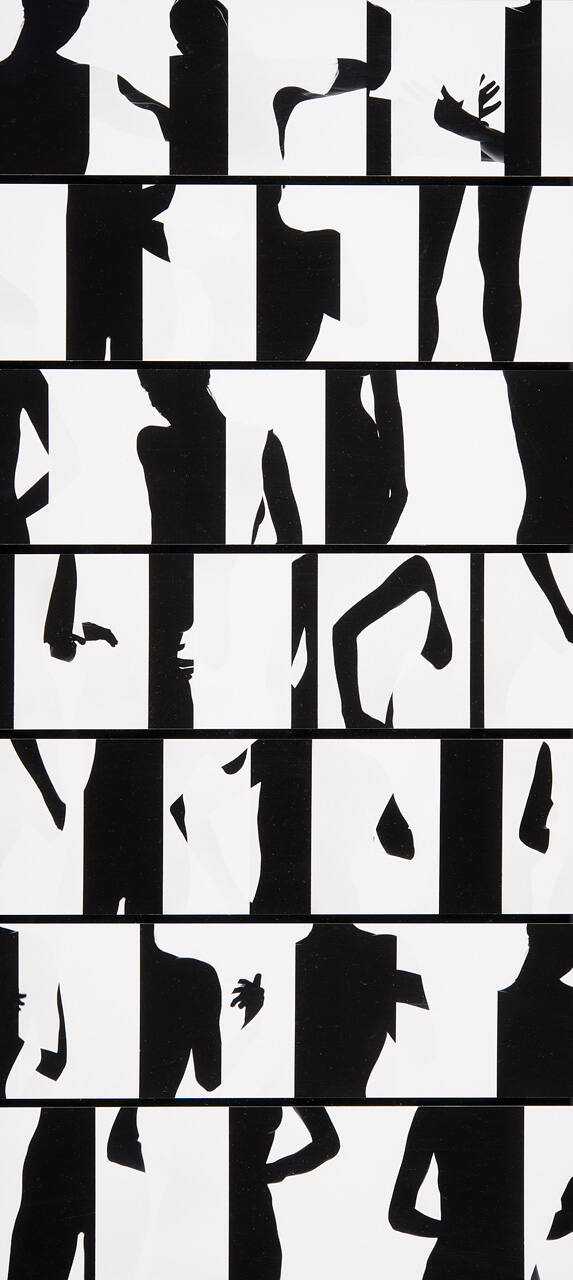 DescriptionImage composed of seven horizontal prints made up of high contrast details of a female nude.Copyright© Estate of Ray K. Metzker