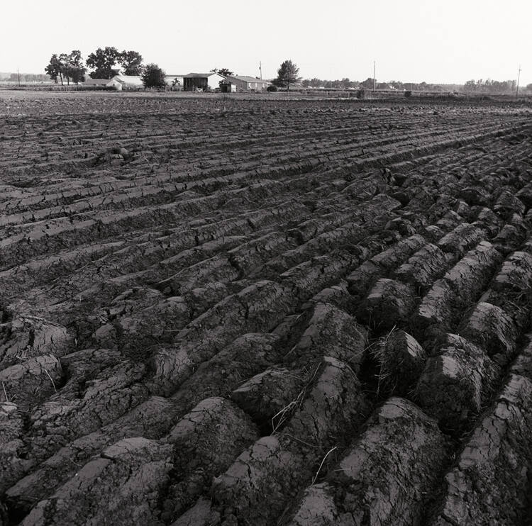 DescriptionImage a roughly plowed field with a few trees and homes in the distance.Copyright© Larry Schwarm Photography
