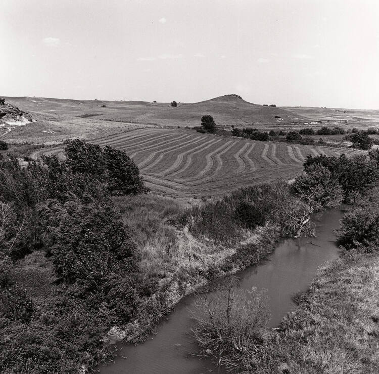 DescriptionImage of a landscape with a small body of water in foreground and plowed fields behind.Copyright© Larry Schwarm Photography