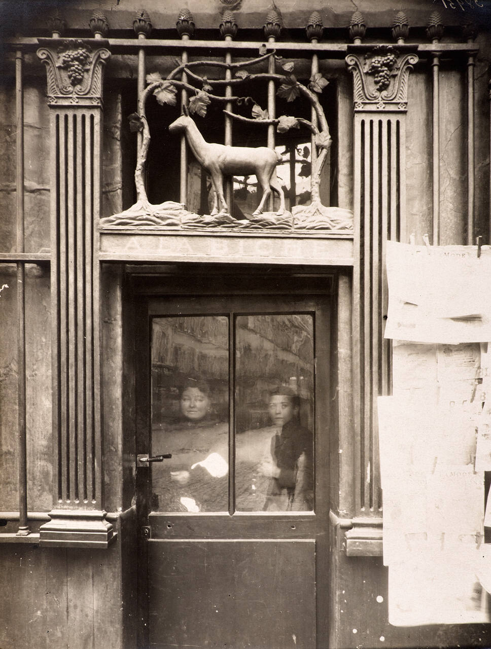 Written on back of sheet, bottom center, upside down, in pencil "grille et enseigne "a la biche" / rue geoffroy St. Hilaire / 38951 / Jardin de Pl...[?]"