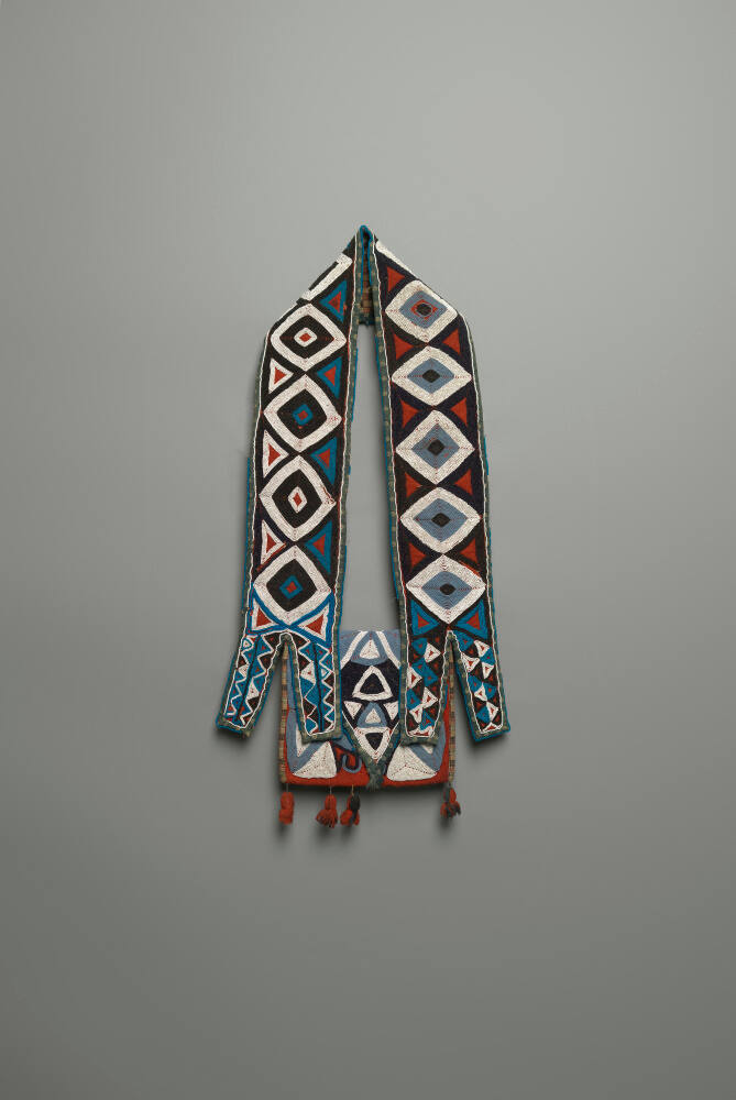 DescriptionBandolier with bead embroidery on wool cloth foundation, designs consist of various scrolling geometric shapes and forms.ProvenanceJoanne and Lee Lyon, Aspen, CO;