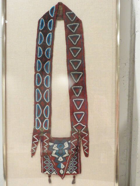 DescriptionBandolier with bead embroidery on wool cloth foundation, designs consist of various scrolling geometric shapes and forms.ProvenanceJoanne and Lee Lyon, Aspen, CO;
