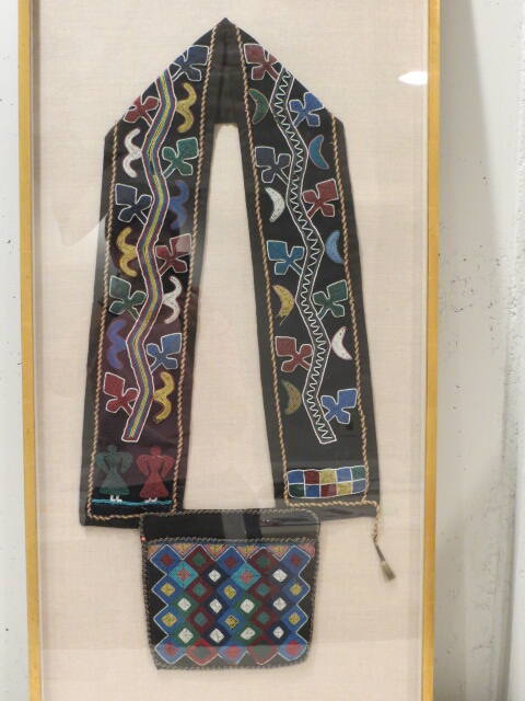 DescriptionBandolier with bead embroidery on wool cloth foundation, designs consist of various scrolling geometric shapes and forms.Exhibition HistoryFor exhibition in the Early American (permanent) galleries, Philadelphia Museum of Art, Pennsylvania, March 2021 – November 2022.