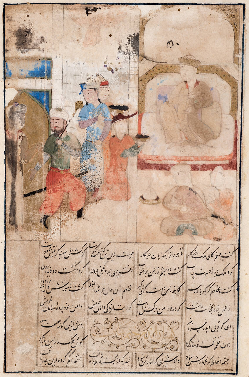 DescriptionIllustration to 20th magala from the Matla' al-Anwar, the first poem of the Khamsa.Exhibition HistoryPeasants and Nomads of the Arab World, Museum of International Folk Art, Santa Fe, New Mexico, October 1958- February 1959.