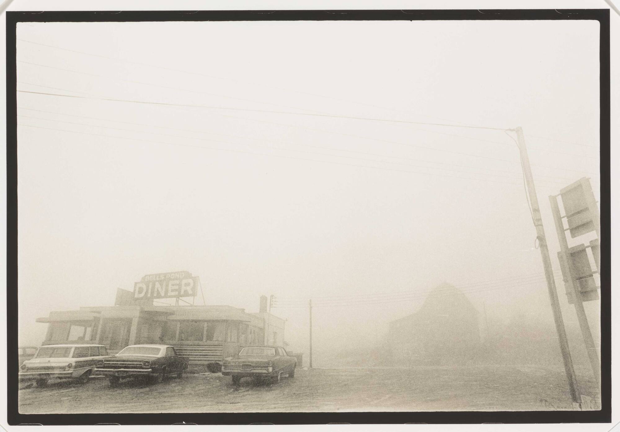DescriptionImage of three cars parked outside of Bells Pond Diner (foggy).ProvenanceHall Family Foundation, Kansas City, MO, 2013;